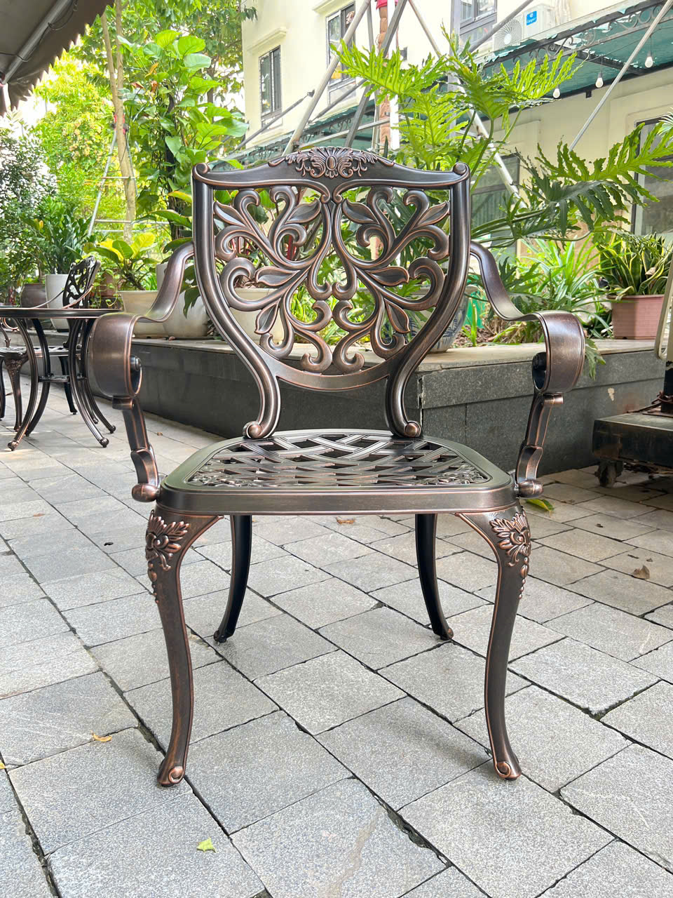 Sản phẩm sở hữu những đường nét mềm mại, tinh xảo, tôn lên vẻ đẹp nổi bật của không gian ngoài trời. Sự kết hợp hài hòa giữa phong cách cổ điển và hiện đại mang lại cho bộ bàn ghế vẻ ngoài thanh lịch, dễ dàng phối hợp với nhiều món đồ nội thất khác, từ cổ điển đến hiện đại.