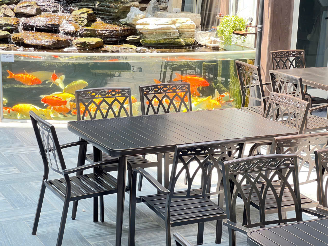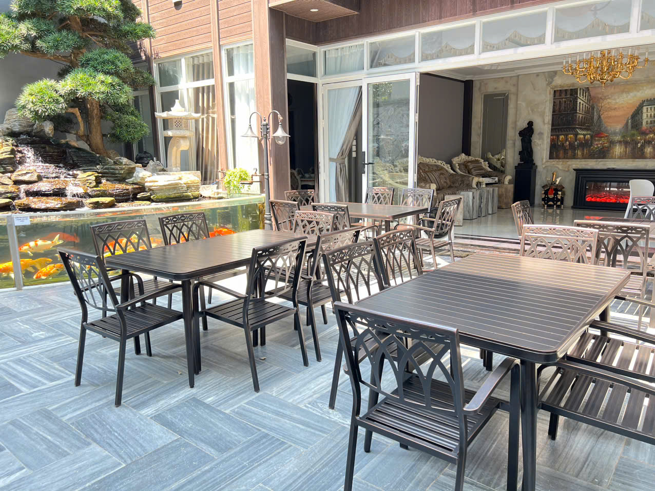 BÀN GIAO 5 BỘ BÀN NHÔM ĐÚC D150 6 GHẾ CHO NHÀ HÀNG TẠI LONG BIÊN - HÀ NỘI