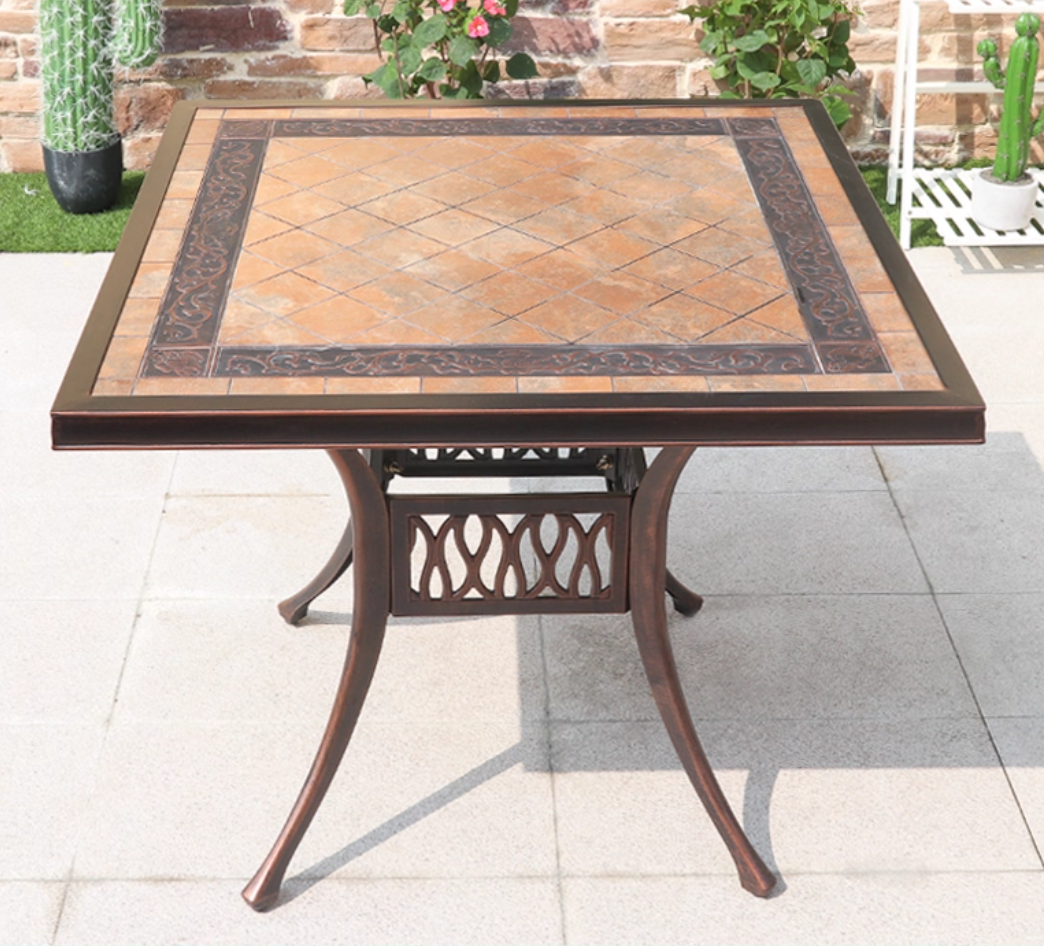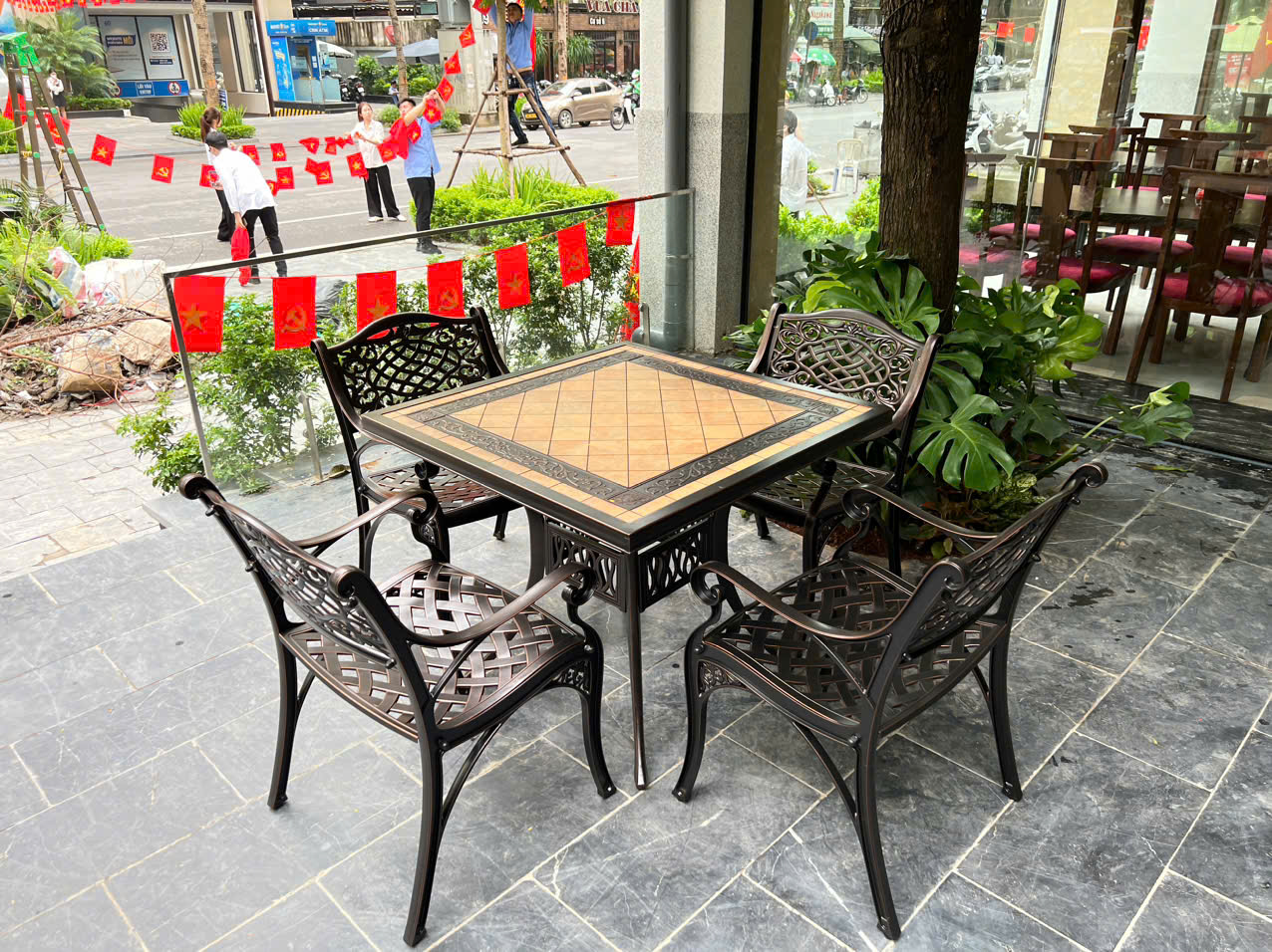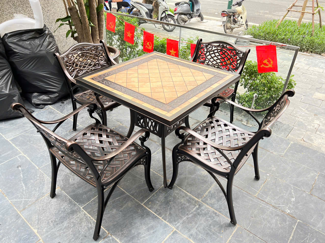 Chất liệu bàn: Khung nhôm đúc sơn tĩnh điện, mặt đá gốm