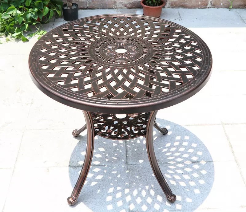 Toàn bộ bàn và ghế được làm từ hợp kim nhôm đúc, có khả năng chịu mưa nắng, chống oxy hóa, không gỉ sét, phù hợp với điều kiện khí hậu ngoài trời khắc nghiệt. Đây là dòng sản phẩm cao cấp, có thể đặt cố định ngoài sân vườn, ban công, hồ bơi hay sân thượng mà không lo xuống cấp theo thời gian.