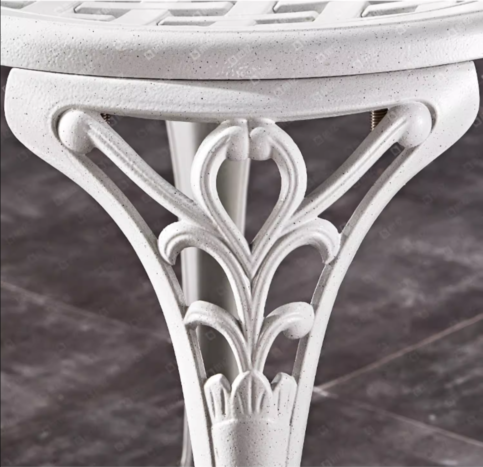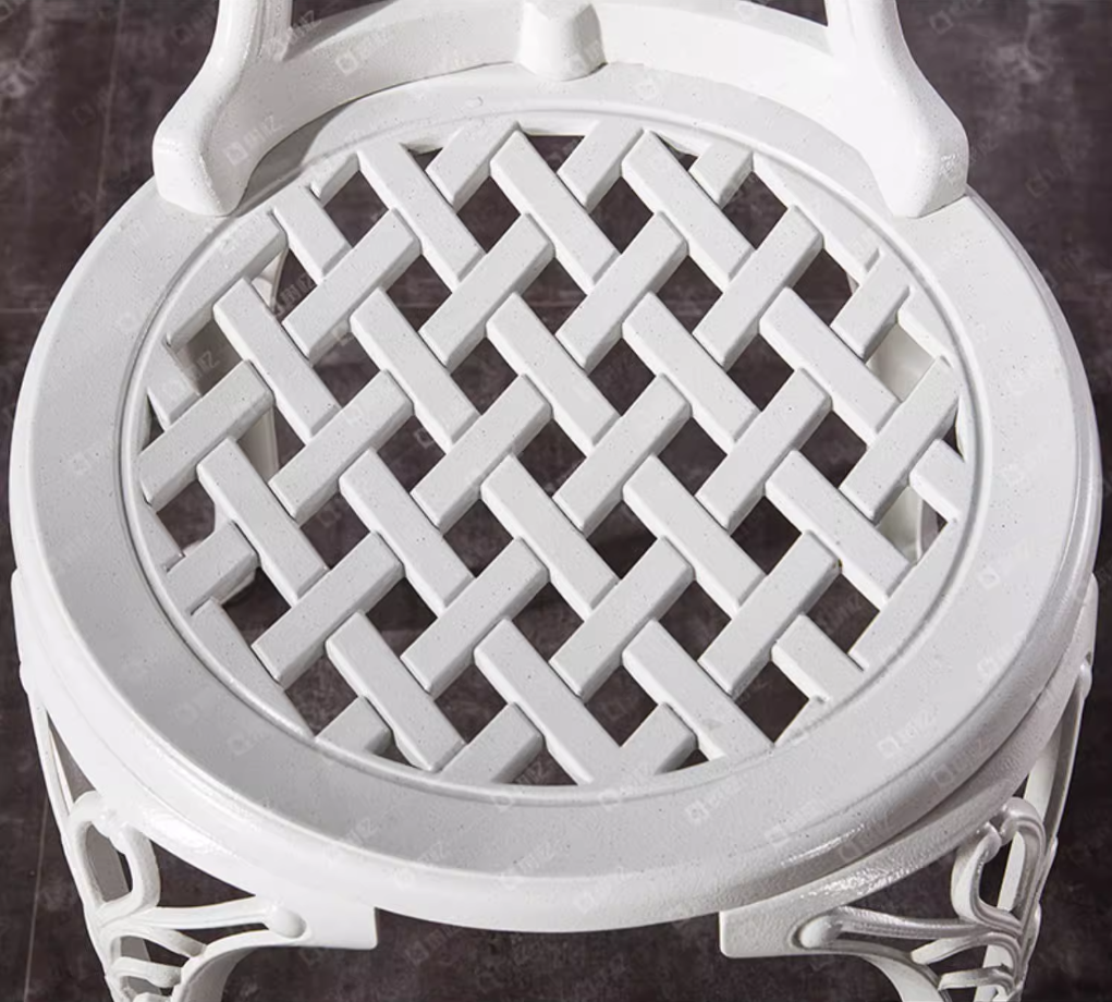 Chất liệu nhôm đúc là một trong những điểm nhấn quan trọng của bộ bàn ghế này. Nhôm đúc có những đặc tính nổi bật như nhẹ, mềm dẻo và có độ bền cao. Điều này cho phép các nhà thiết kế dễ dàng tạo hình và uốn nắn theo ý tưởng, mang lại những sản phẩm có thiết kế tinh tế và độc đáo. Ngược lại, các chất liệu như sắt, thép, đồng hay gang thường nặng, cứng và dễ gãy, dẫn đến độ bền không cao như nhôm đúc.