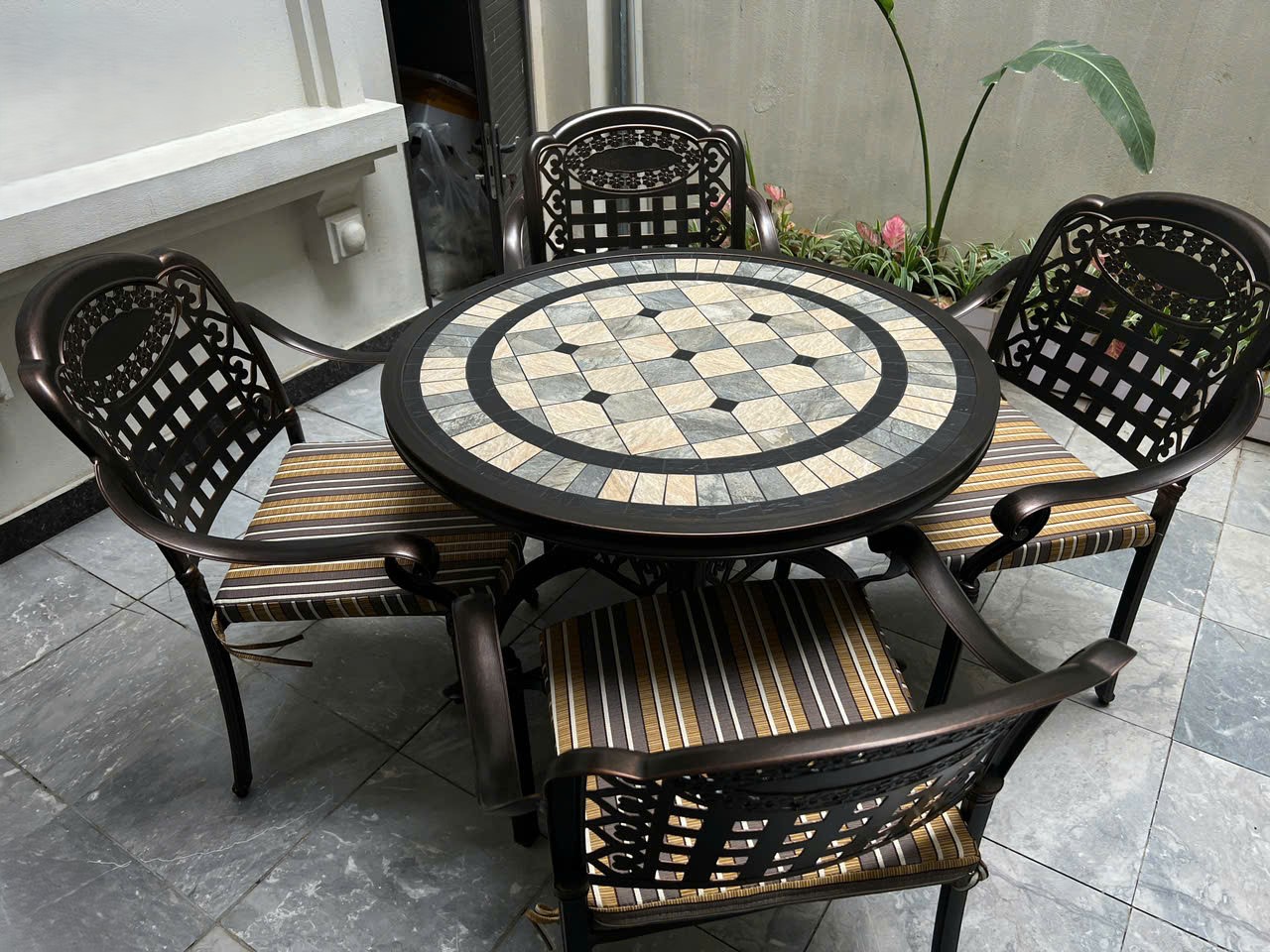 Tên sản phẩm : Bộ bàn ghế sân vườn ngoài trời mặt đá D94