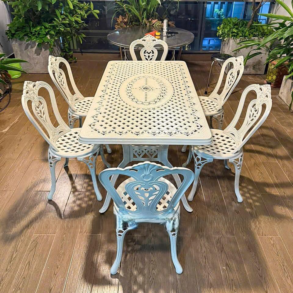 Bộ bàn ghế nhôm đúc phù hợp cho nhiều khu vực ngoài trời như sân vườn, ban công chung cư, sân thượng, và khu vực giải trí ngoài trời. Bạn có thể sử dụng nó làm bàn ăn, bàn trà, hoặc nơi nghỉ ngơi thư giãn.