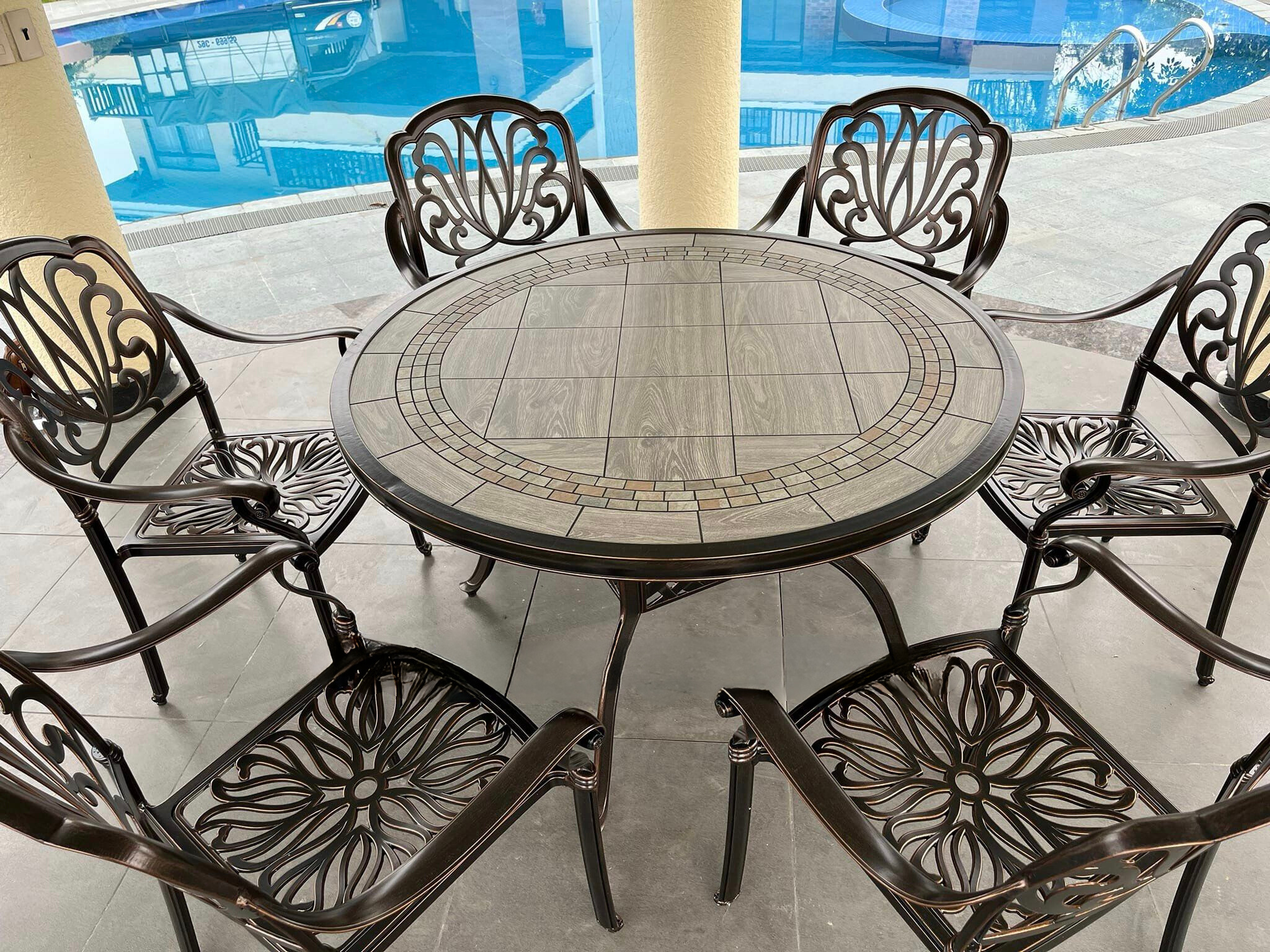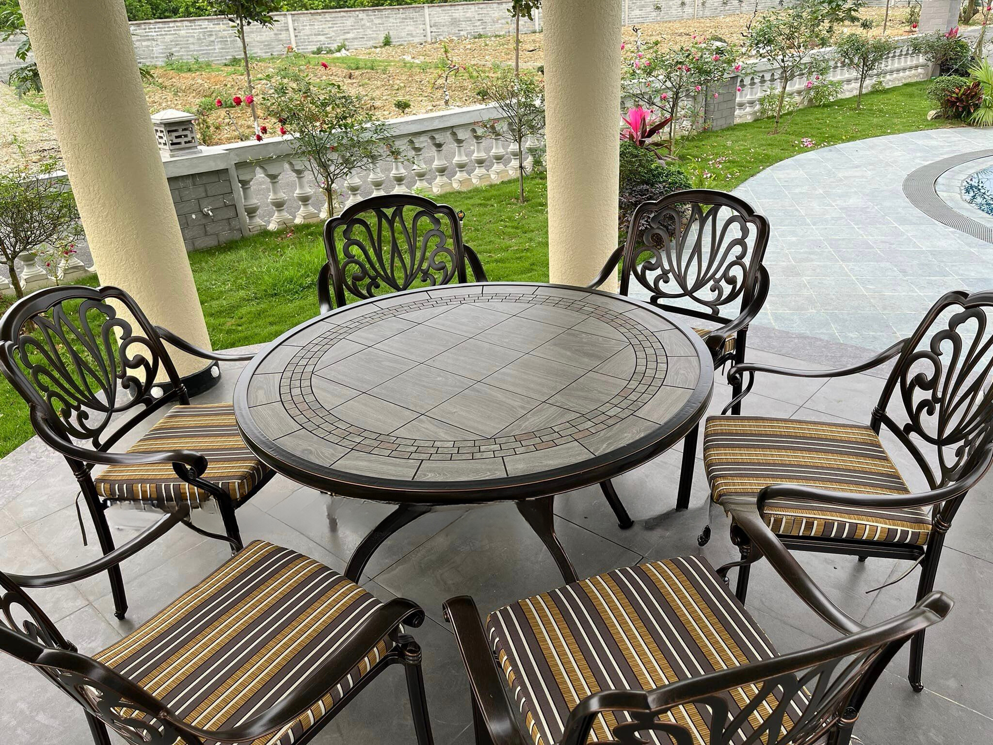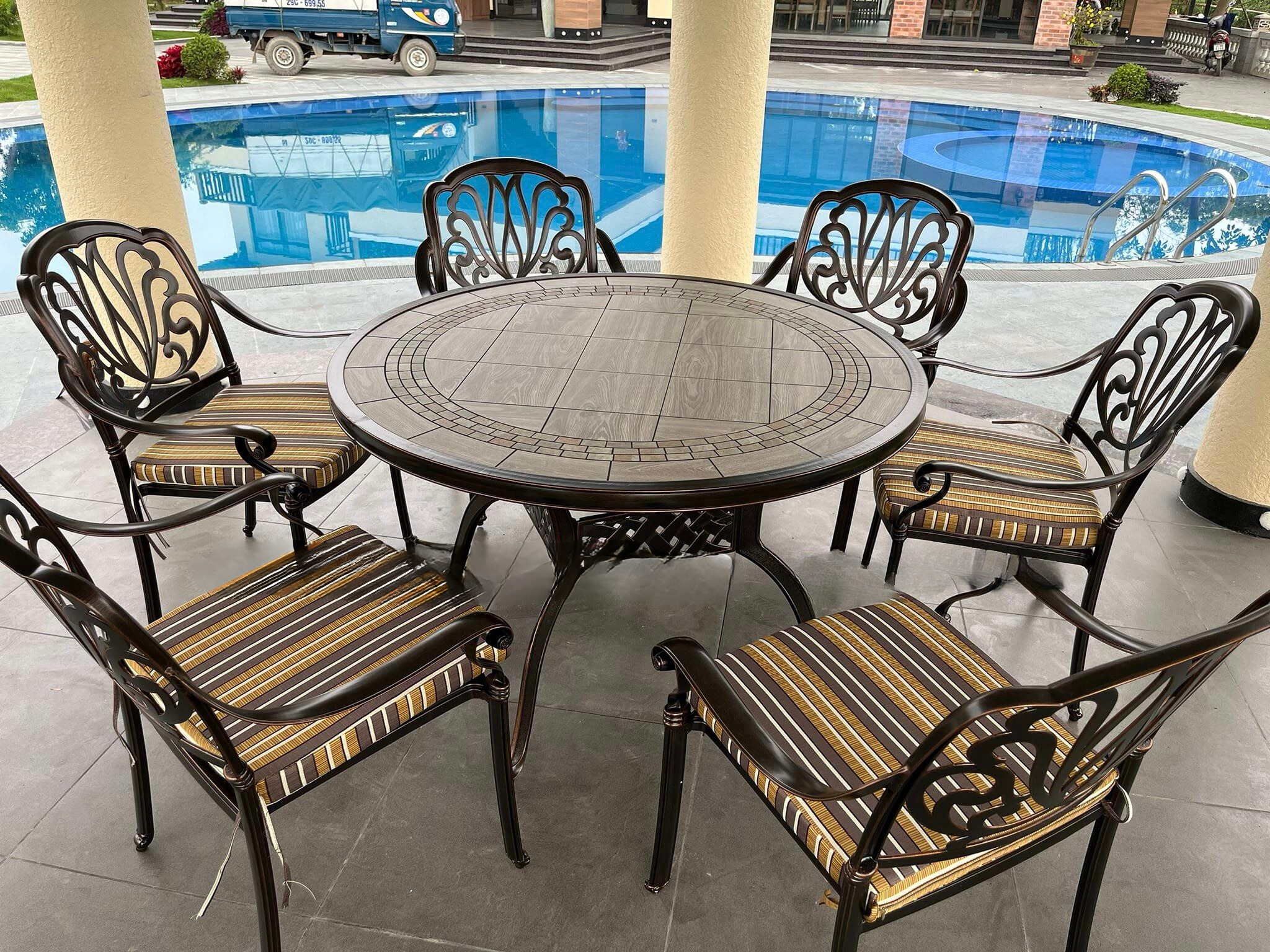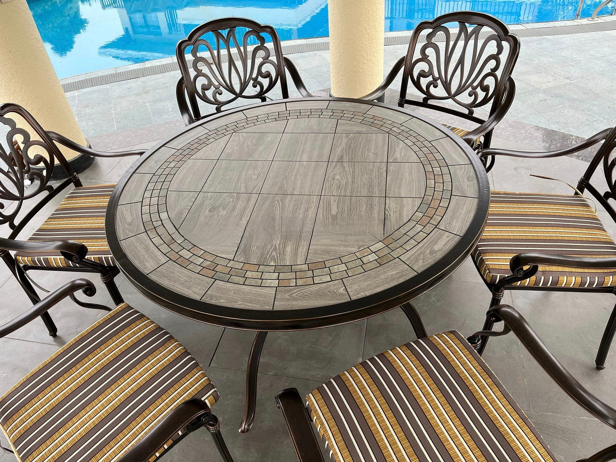 Giao Hàng Bộ Bàn Ghế Nhôm Đúc Mặt Đá D120 Nhập Khẩu: Sự Sang Trọng Từ Thiết Kế Đến Chất Lượng