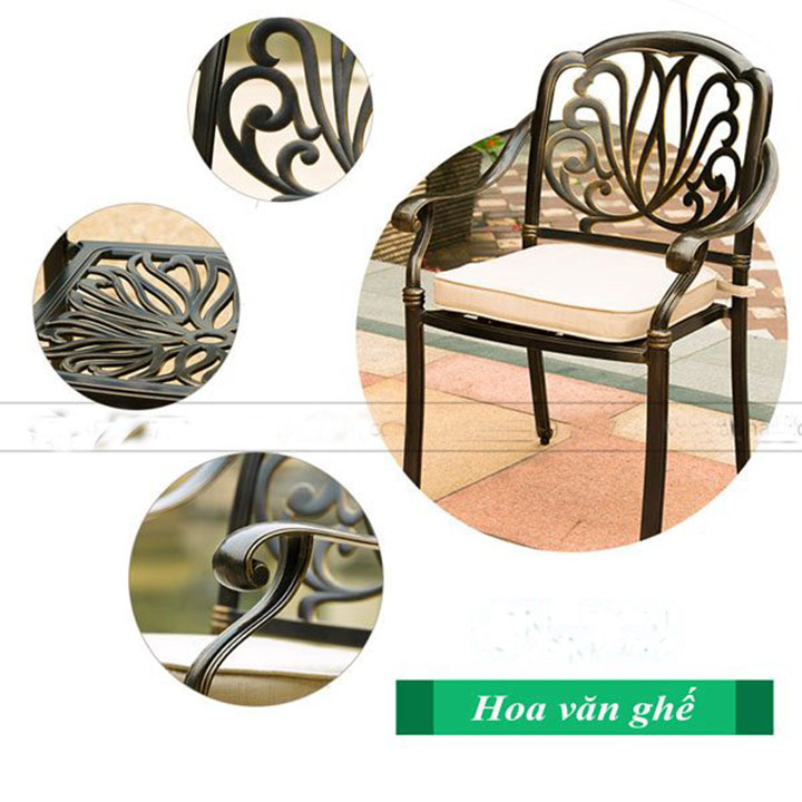 Bộ Bàn Ghế Nhôm Đúc D120 Mặt Đá không chỉ chú trọng đến chất lượng mà còn ghi dấu ấn bởi thiết kế tinh tế và hiện đại. Ghế ngồi họa tiết hoa sen phối cùng mặt bàn đá gốm có các họa tiết cách điệu, bộ sản phẩm này không chỉ đơn thuần là một món đồ nội thất mà còn là tác phẩm nghệ thuật, làm bừng sáng bất kỳ không gian nào mà nó hiện diện.