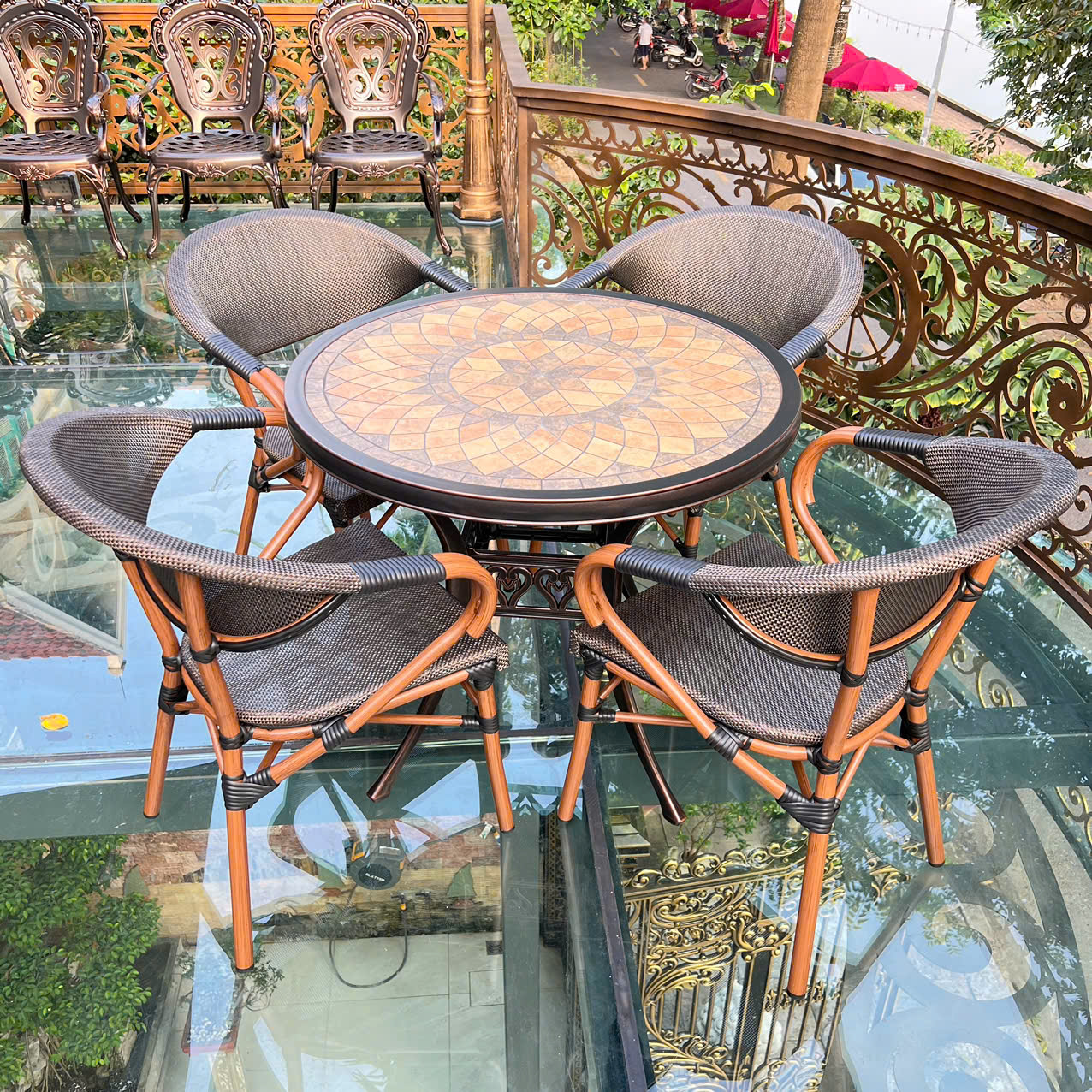 Ngoài ra, bộ bàn mặt đá kèm 4 ghế textilene cũng tạo được sự thích thú cho khách hàng bởi tính ứng dụng cao. Mặt bàn làm từ đá gốm ceramic bền đẹp, chống thấm nước, không bị phai màu và rất sang trọng. Ghế textilene được thiết kế với lưới cao cấp, thoáng khí, ngồi êm và đặc biệt phù hợp cho không gian ngoài trời vì không bị mục hay phai màu dưới ánh nắng. Sự kết hợp giữa khung nhôm và lưới textilene mang đến vẻ hiện đại, nhẹ nhàng nhưng vẫn chắc chắn và bền bỉ.