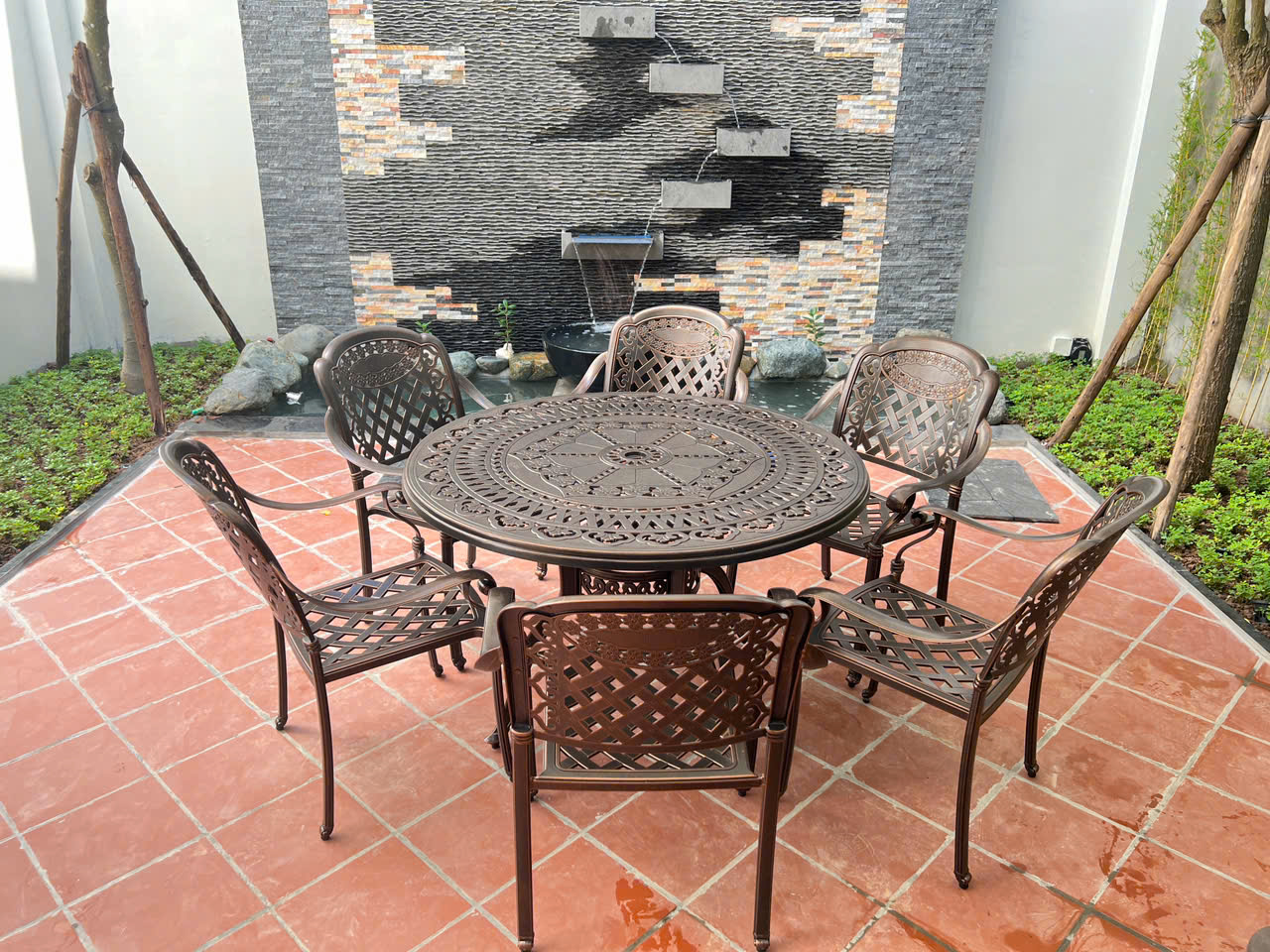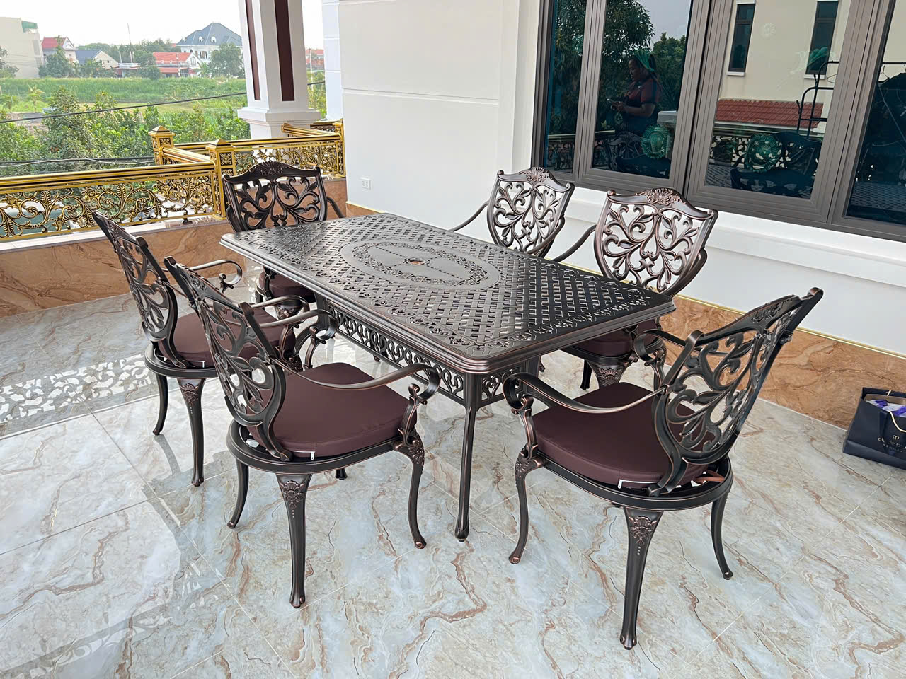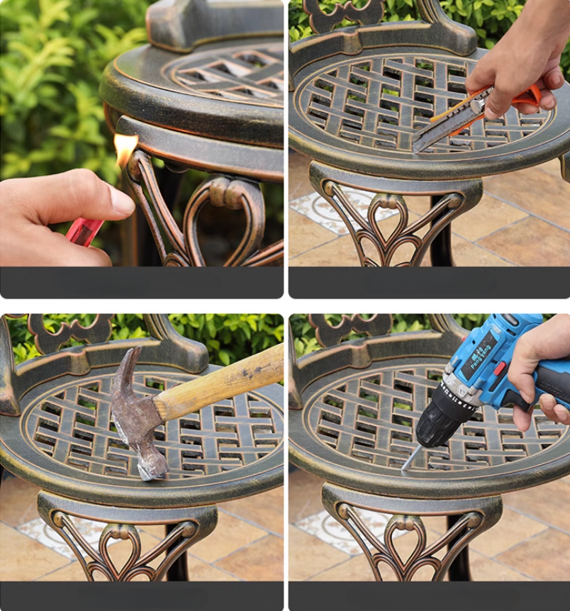 Với công nghệ đúc khuôn hiện đại, bàn ghế nhôm đúc mang các họa tiết hoa văn sắc nét, phong cách tân cổ điển hoặc hiện đại, phù hợp với mọi không gian sân vườn hoặc ban công.