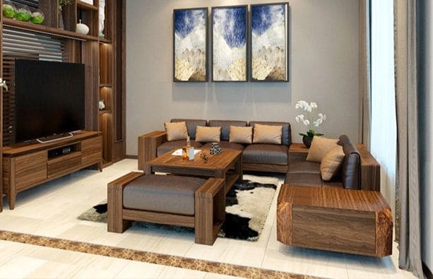 Hiện nay, sofa phòng khách được thiết kế và sản xuất từ những chất liệu gỗ tự nhiên như: gỗ óc chó, gỗ sồi, gõ đỏ,…Mỗi chất liệu thường có những ưu điểm khách nhau, thế nên bạn cần lưu ý trước khi mua sản phẩm: