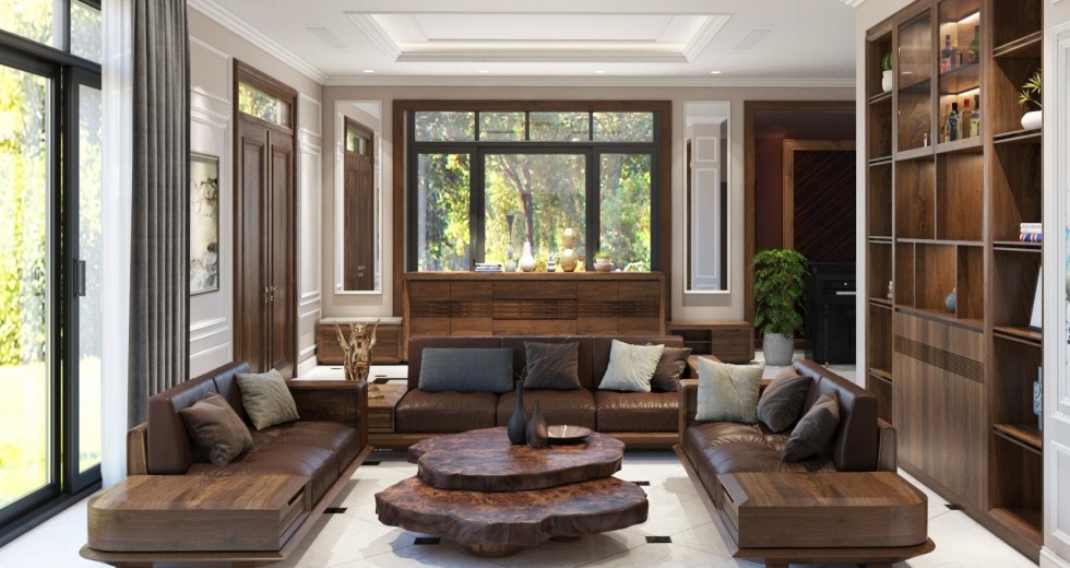 1.Bộ sofa gỗ tự nhiên cho phòng khách phải hợp với phong cách thiết kế của ngôi nhà