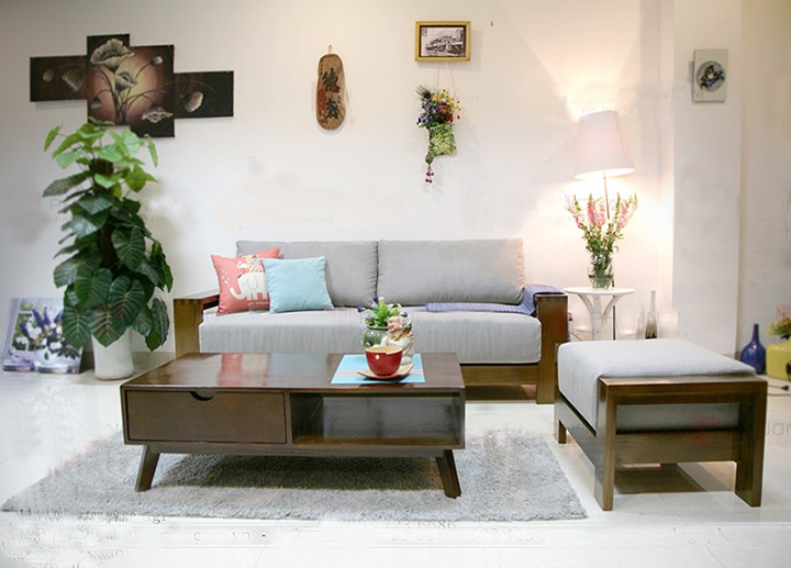 Bộ ghế sofa gỗ PS096 gọn gang thuận tiện cho việc di chuyển , có sẵn giá kệ