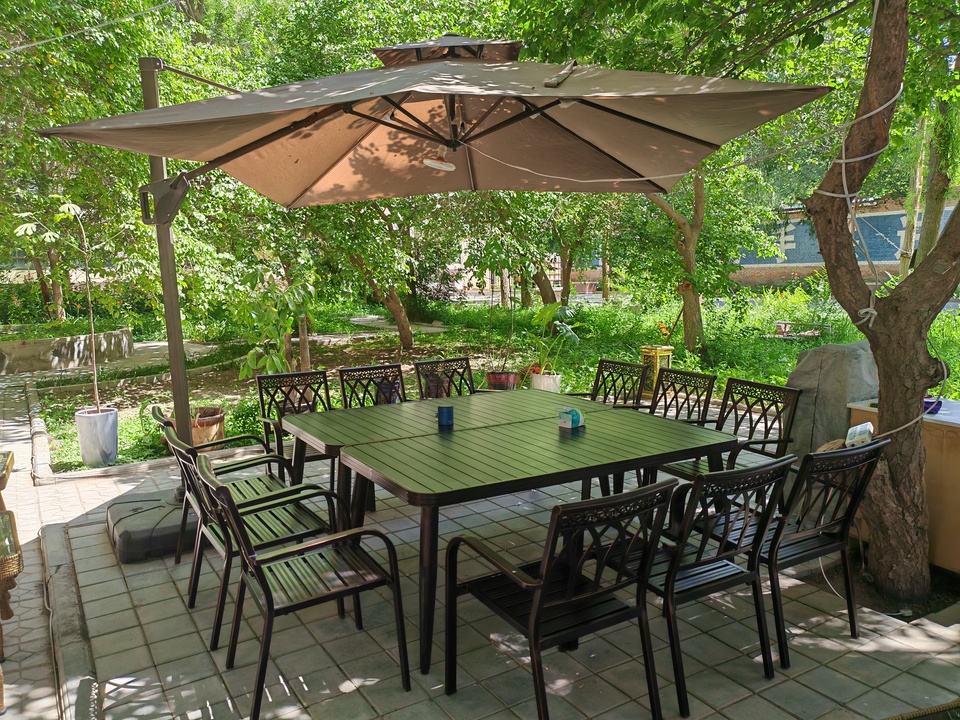 + Đường kính dù: 3m – đủ lớn để che phủ trọn bộ bàn ghế, tạo bóng mát dễ chịu cho người sử dụng.