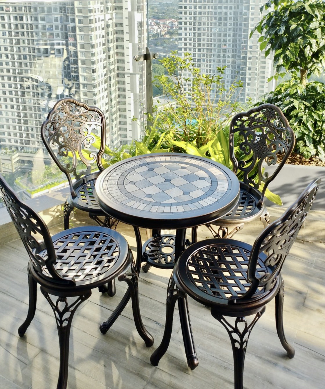 Dù là không gian ngoài trời như sân vườn, ban công hay trong nhà như phòng khách, phòng ăn, bộ bàn ghế nhôm đúc mặt đá D60 đều dễ dàng hòa hợp. Với kích thước nhỏ gọn, bộ bàn ghế này còn phù hợp với những không gian hạn chế, giúp bạn tận dụng tối đa diện tích mà vẫn đảm bảo sự thoải mái.